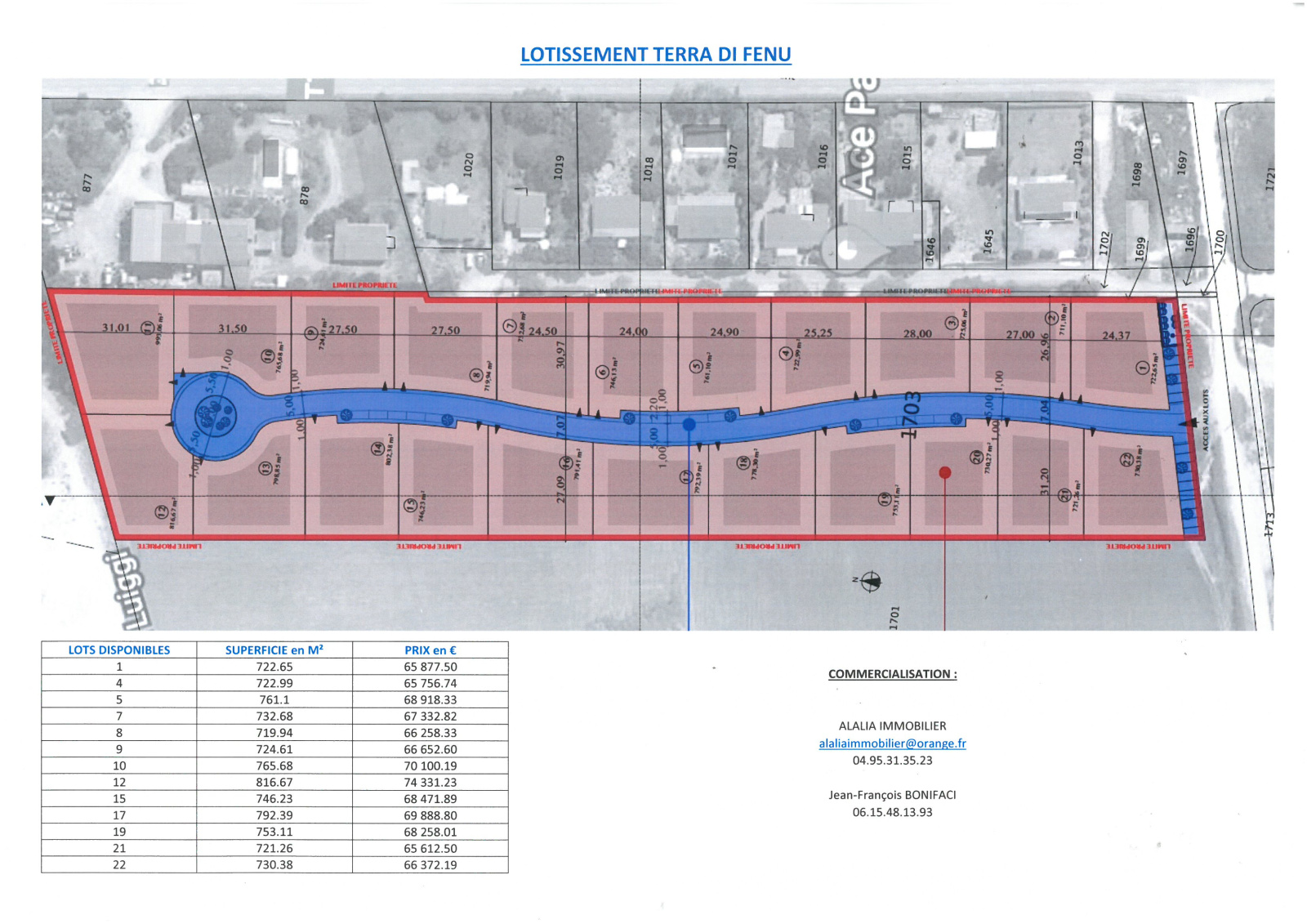 Lotissement Terra di Fenu composé de 22 lots allant de 720m² à 990m².